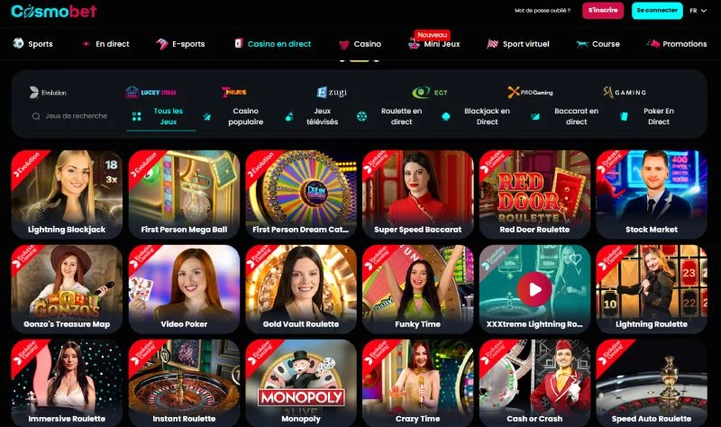 Le catalogue convient aux joueurs qui veulent du choix. Il est suffisamment large pour couvrir les profils orientés slots, mais aussi les joueurs live qui cherchent plus qu’une simple présence symbolique. Sur ce point, Cosmobet tient correctement sa promesse.
